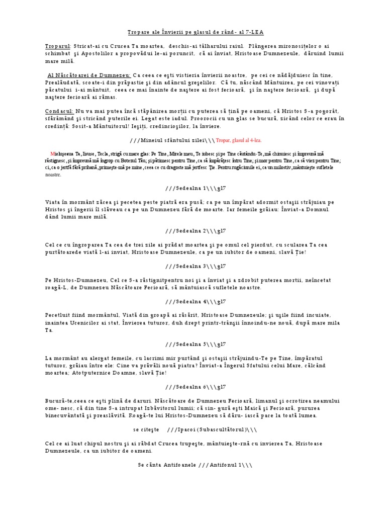 Tropare ale nvierii pe glasul de rnd - al 7-LEA