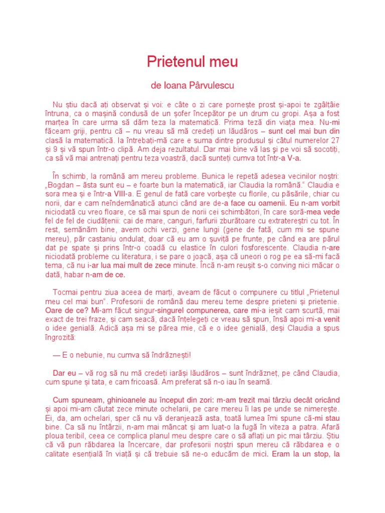 2. Lucrai n perechi. Delimitai n fragmente logice povestirea Prietenul meu de Ioana Prvulescu.