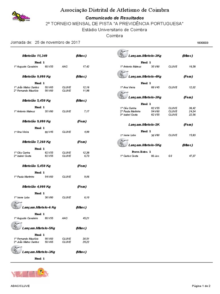 1 Antonio Mateus 35 V80 CLUVE 7,17 2 Paula Martinho 54 V60 CLUVE 24,34