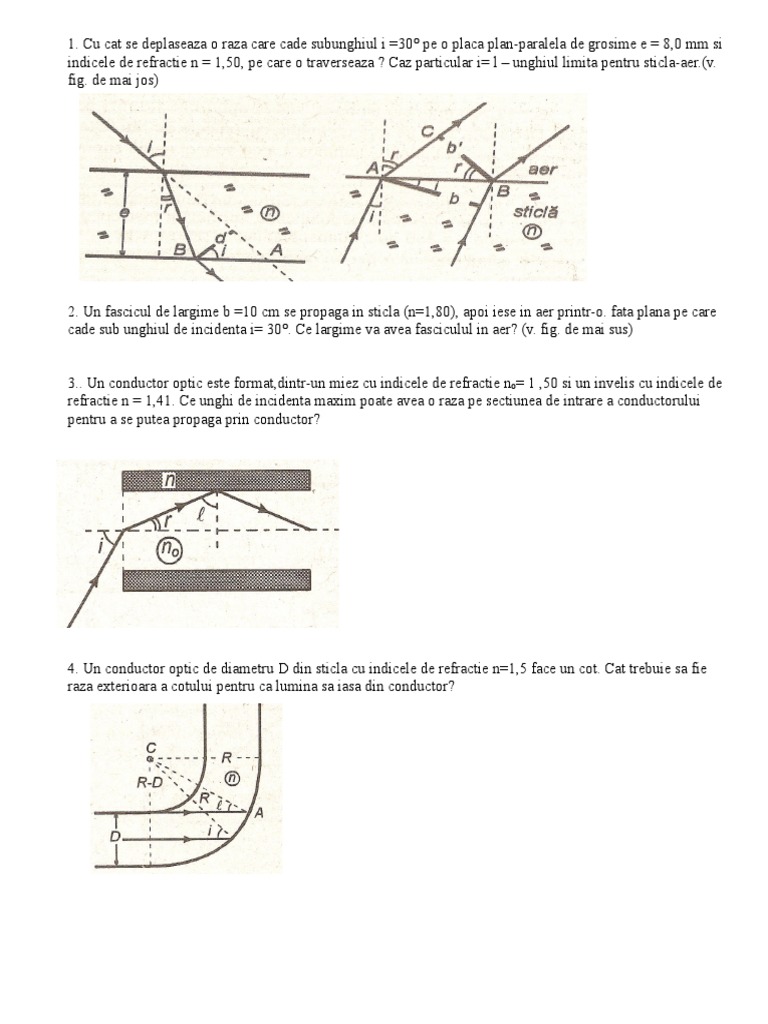 2. Un fascicul de largime b =10 cm se propaga in sticla (n=1,80), apoi iese in aer printr-o. fata plana pe care