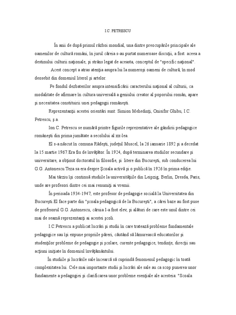 [Link] face parte din "coala pedagogic de la Bucureti", a crei baze au fost puse