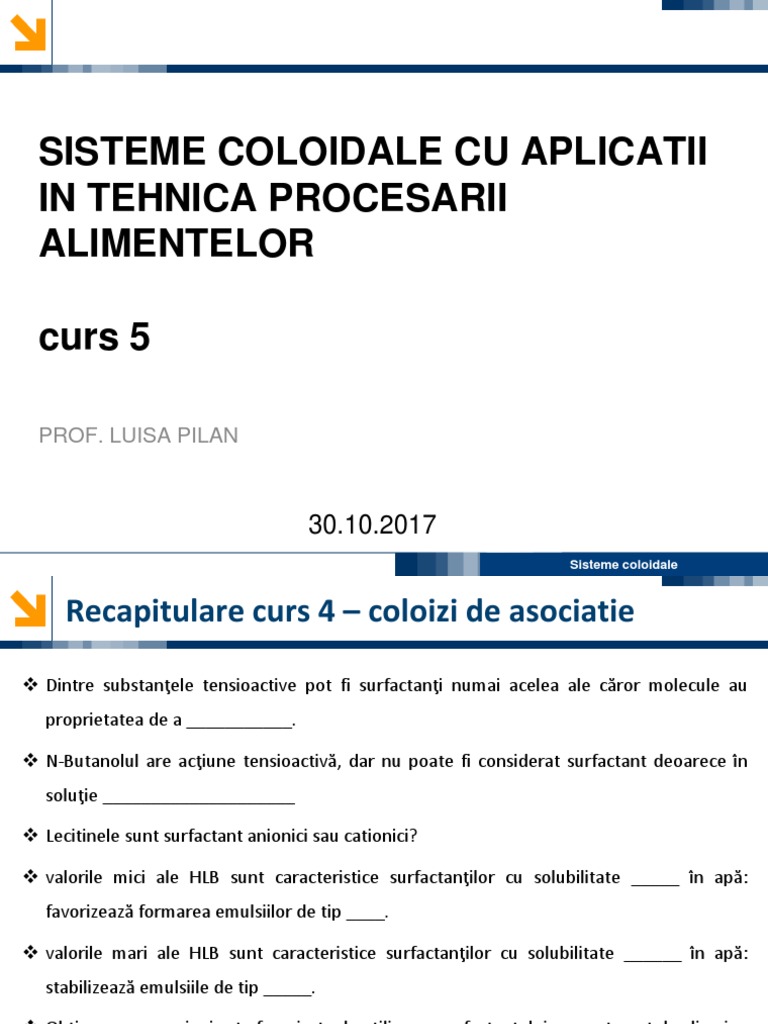 Recapitulare curs 4 coloizi de asociatie