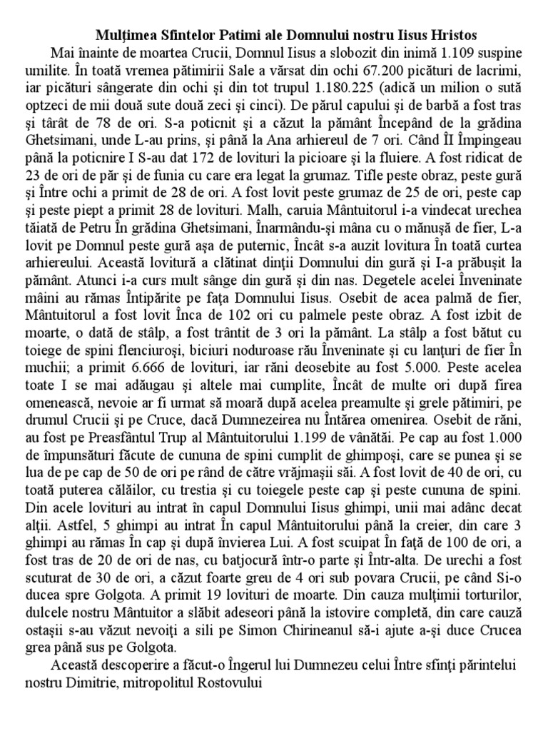 umilite. n toat vremea ptimirii Sale a vrsat din ochi 67.200 picturi de lacrimi,