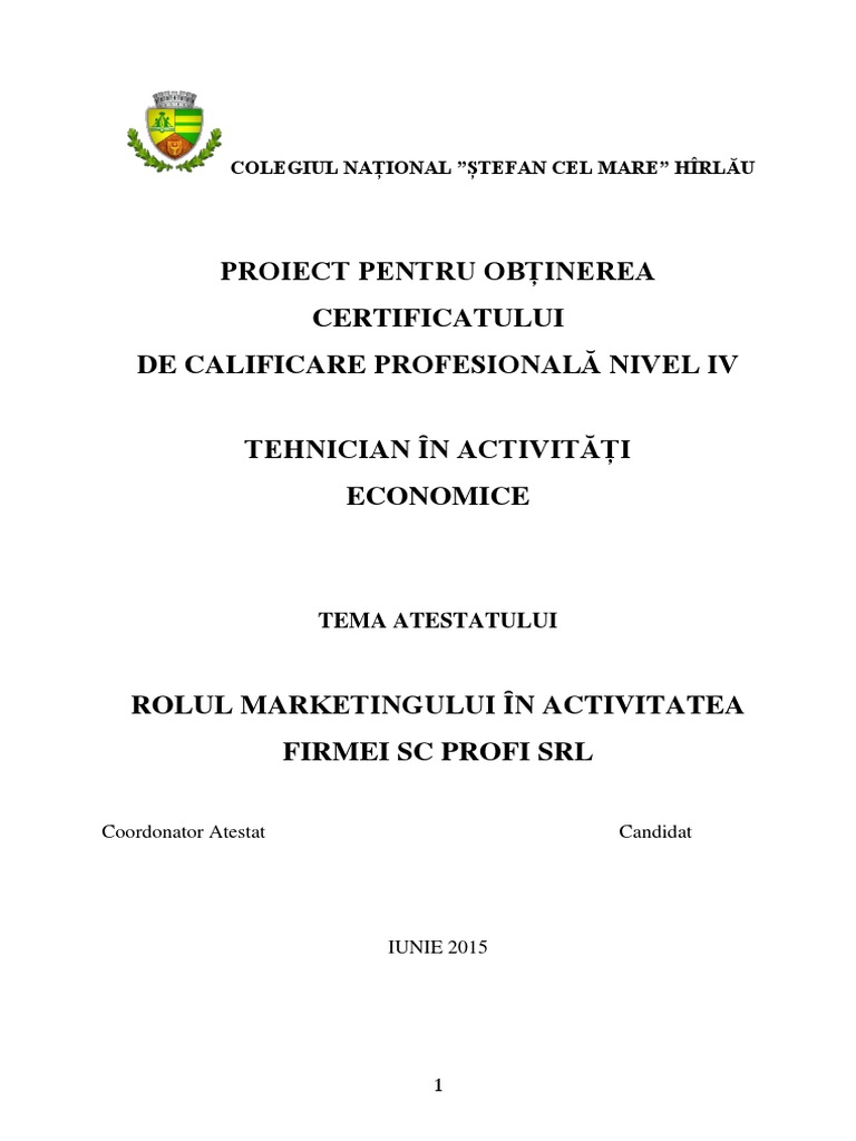 PROFI SRL deoarece marketingul reprezint cea mai important ramur dintre departamentele