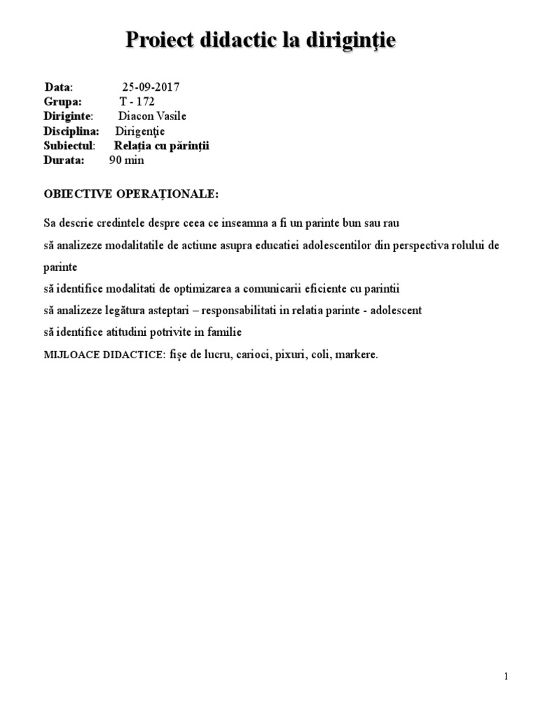 Proiect didactic la diriginie