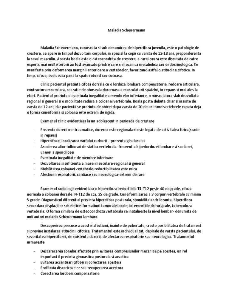 Maladia Scheuermann, cunoscuta si sub denumirea de hipercifoza juvenila, este o patologie de