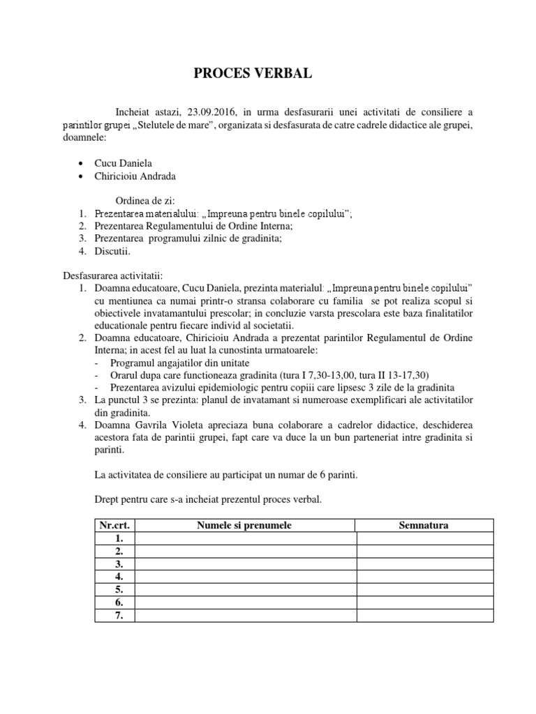 Drept pentru care s-a incheiat prezentul proces verbal.