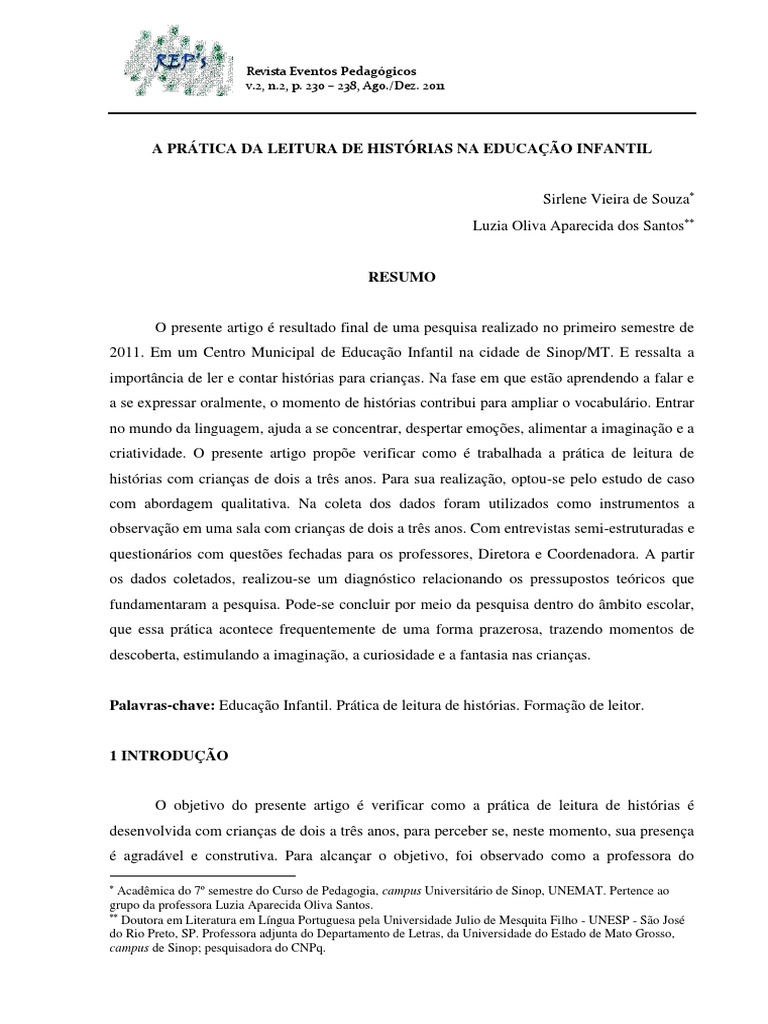 O objetivo do presente artigo é verificar como a prática de leitura de histórias é