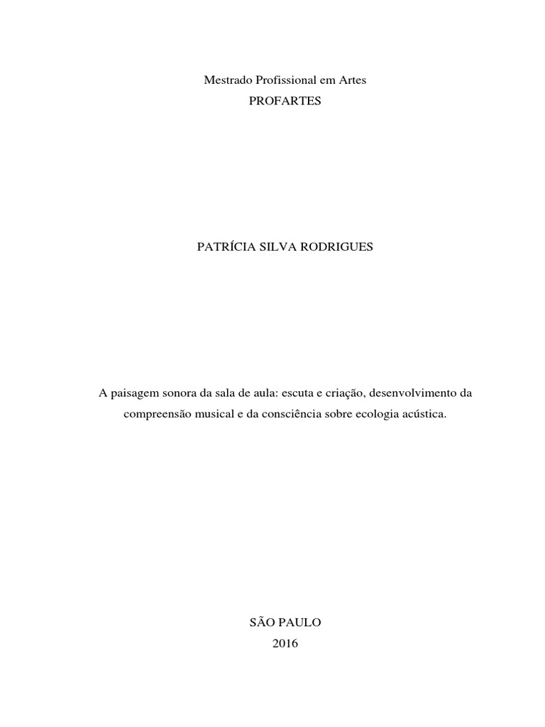 ecologia acústica / Patrícia Silva Rodrigues. - São Paulo, 2016.