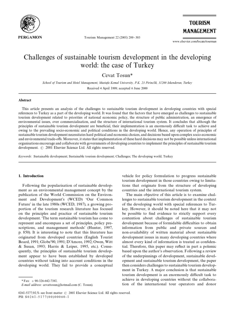 Jenkins, C. L. (1980). Tourism policies in developing countries: A Tosun, C. (1998a). Roots of unsustainable tourism development at the
