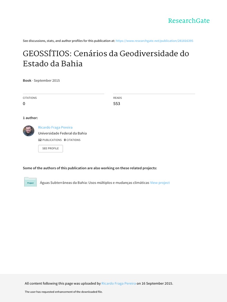 1. Geossítio – Bahia (Ba). 2. Geodiversidade I. Augusto J.
