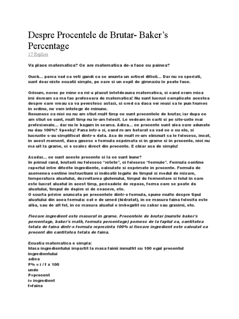 Recunosc ca nici eu nu am stiut mult timp ce sunt procentele de brutar, iar dupa ce
