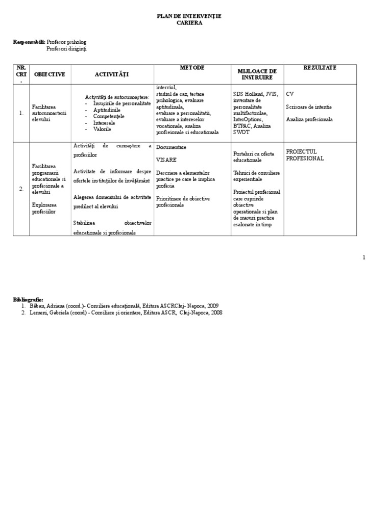 PLAN DE INTERVENŢIE