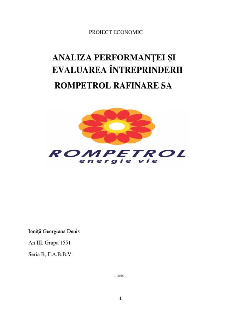 Analiza performanțelor Rometrol Rafinare SA, inclusiv a rentabilitatii acesteia, sunt necesare