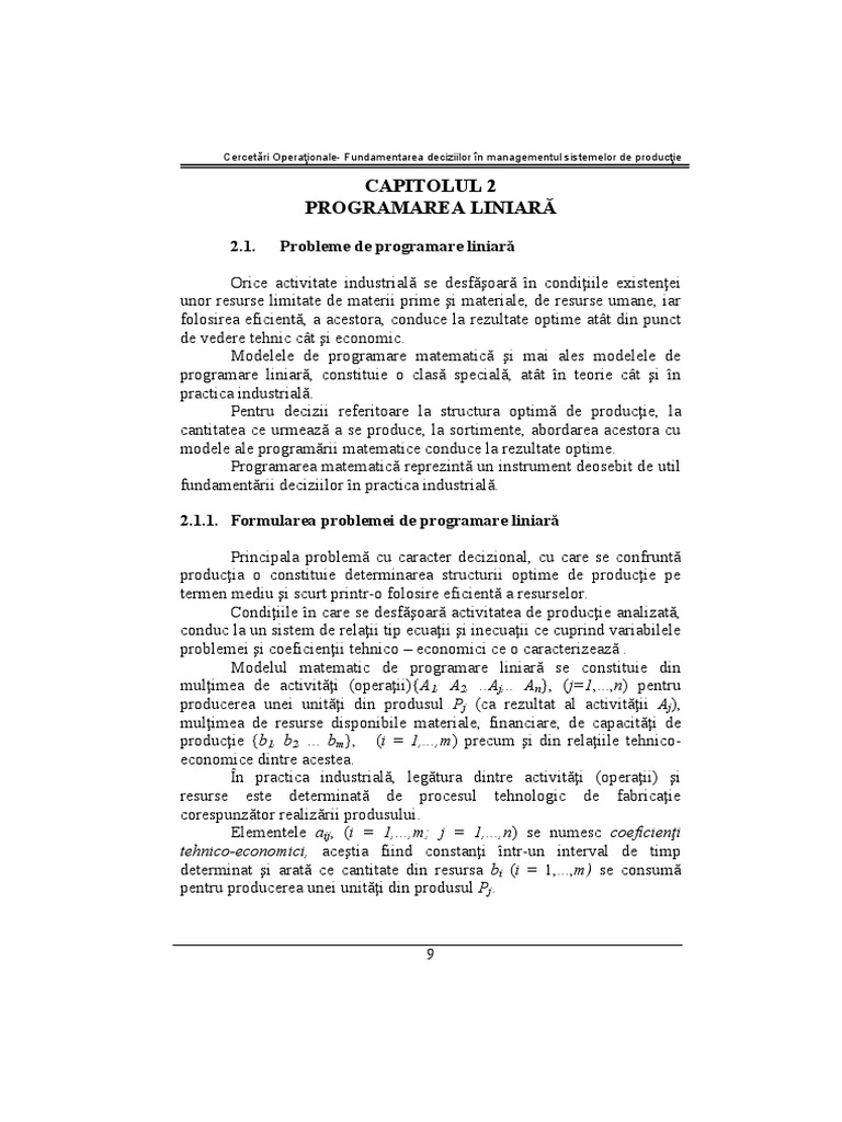 Cercetări Operaţionale- Fundamentarea deciziilor în managementul sistemelor de producţie