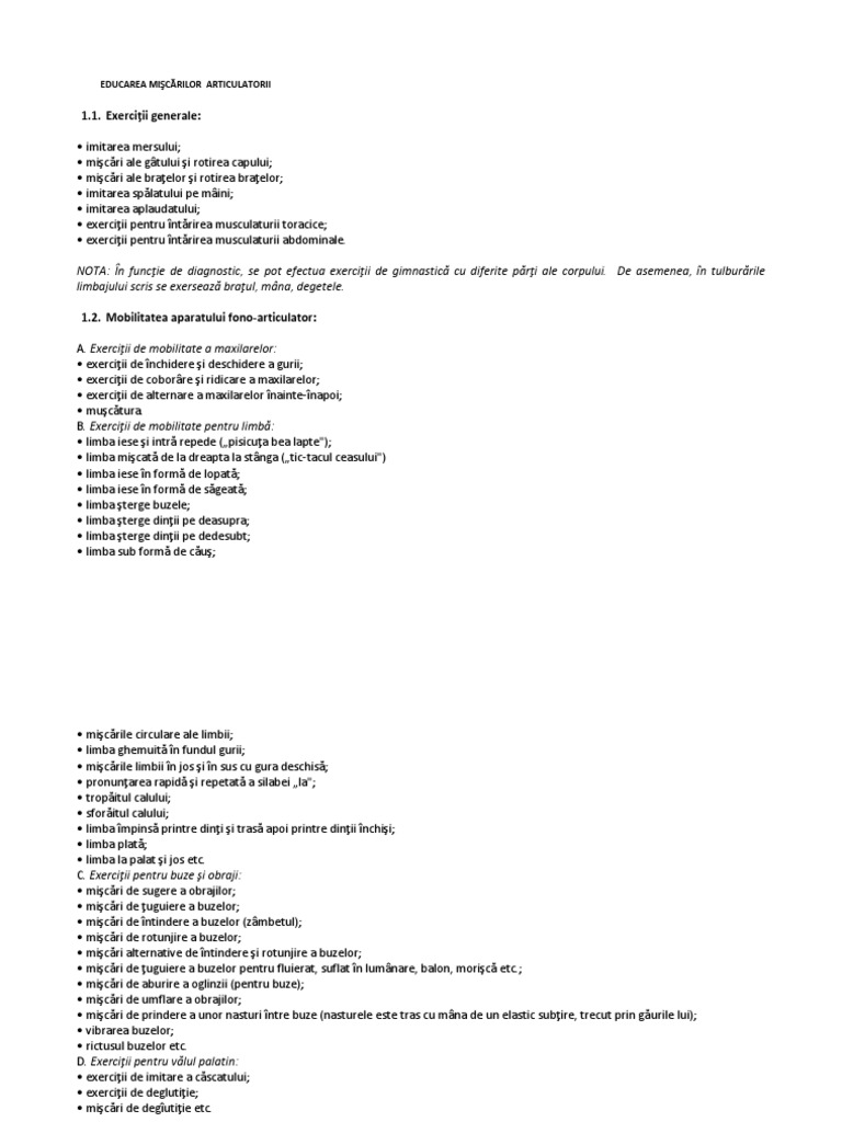 B. Exerciţii de mobilitate pentru limbă: