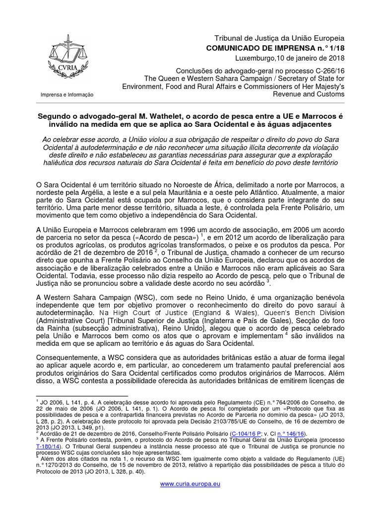 A Frente Polisário contesta, porém, o protocolo do Acordo de pesca no Tribunal Geral da União Europeia (processo