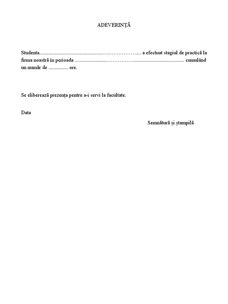 Studenta.................................................….…………….... a efectuat stagiul de practică la
