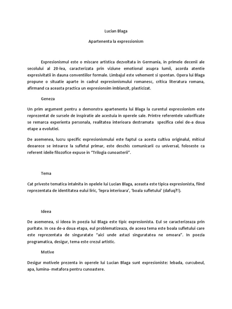 Un prim argument pentru a demonstra apartenenta lui Blaga la curentul expressionism este