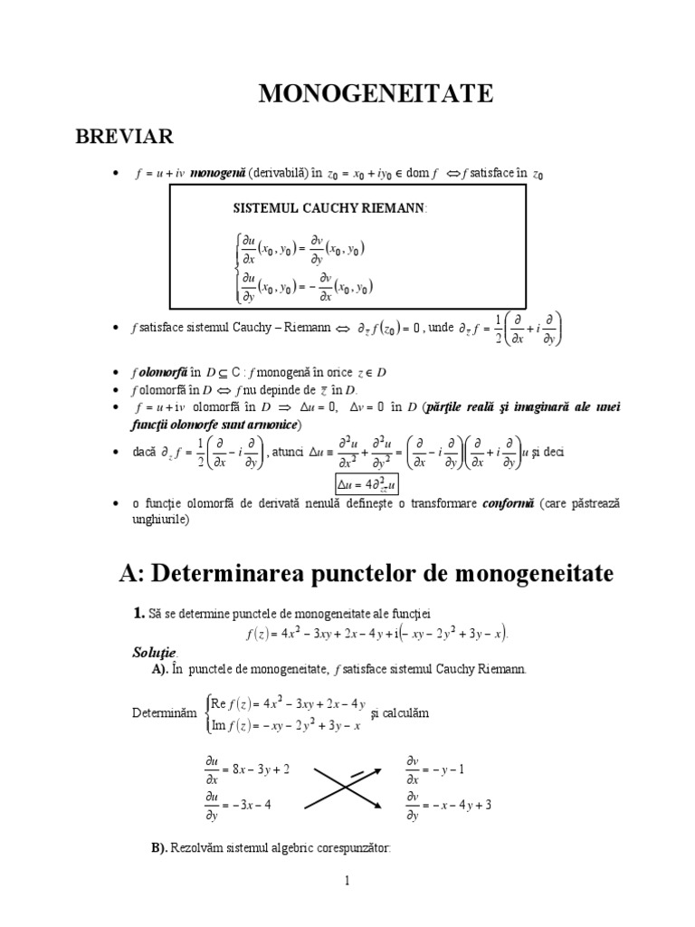 1. Să se determine punctele de monogeneitate ale funcţiei