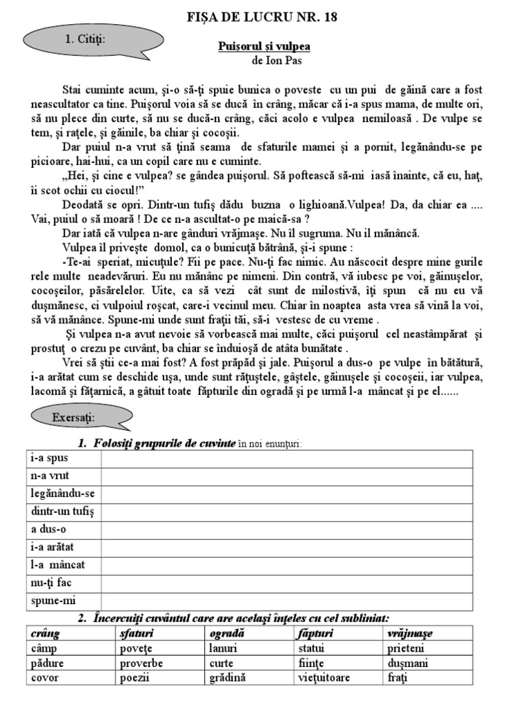 3. Transcrieţi cuvintele vulpii: