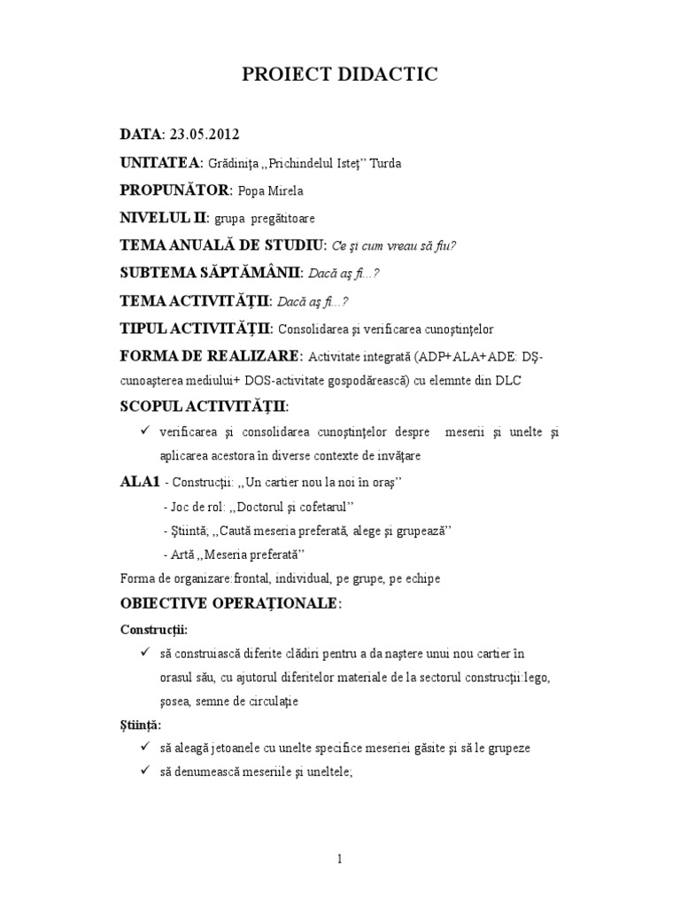 Material folosit:cartea meseriilor, piramida şi roata cu meserii, ghicitori, fişe de