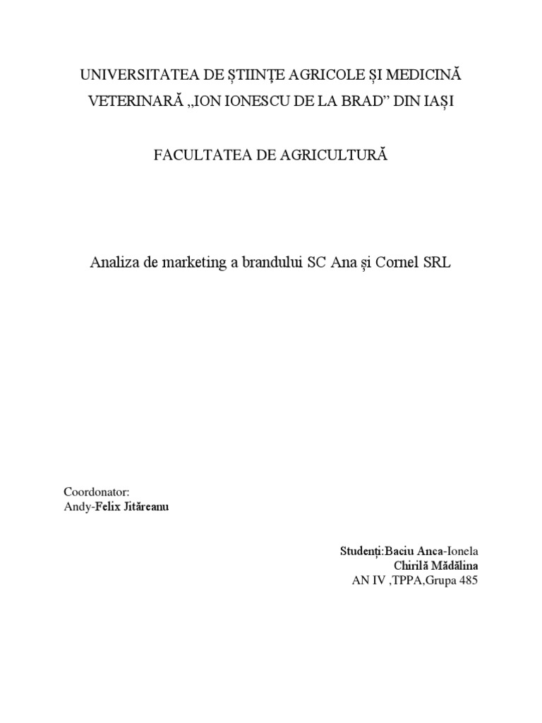 Analiza de marketing a brandului SC Ana și Cornel SRL
