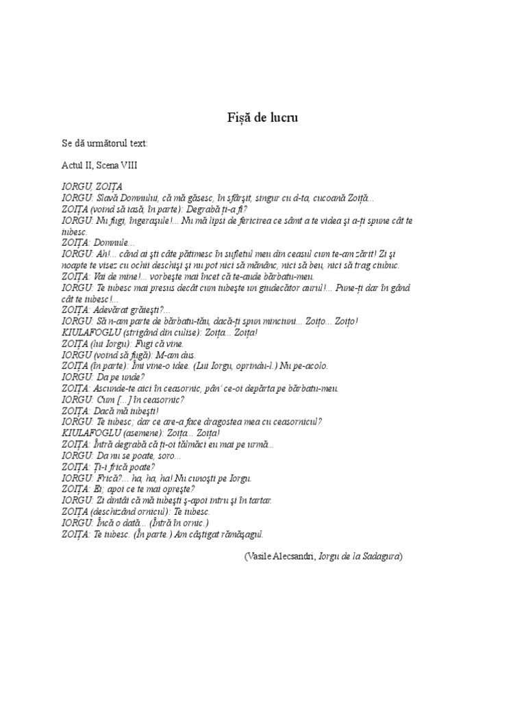 4. Precizează tema discuției dintre personajele Iorgu şi Zoița în fragmentul dat.