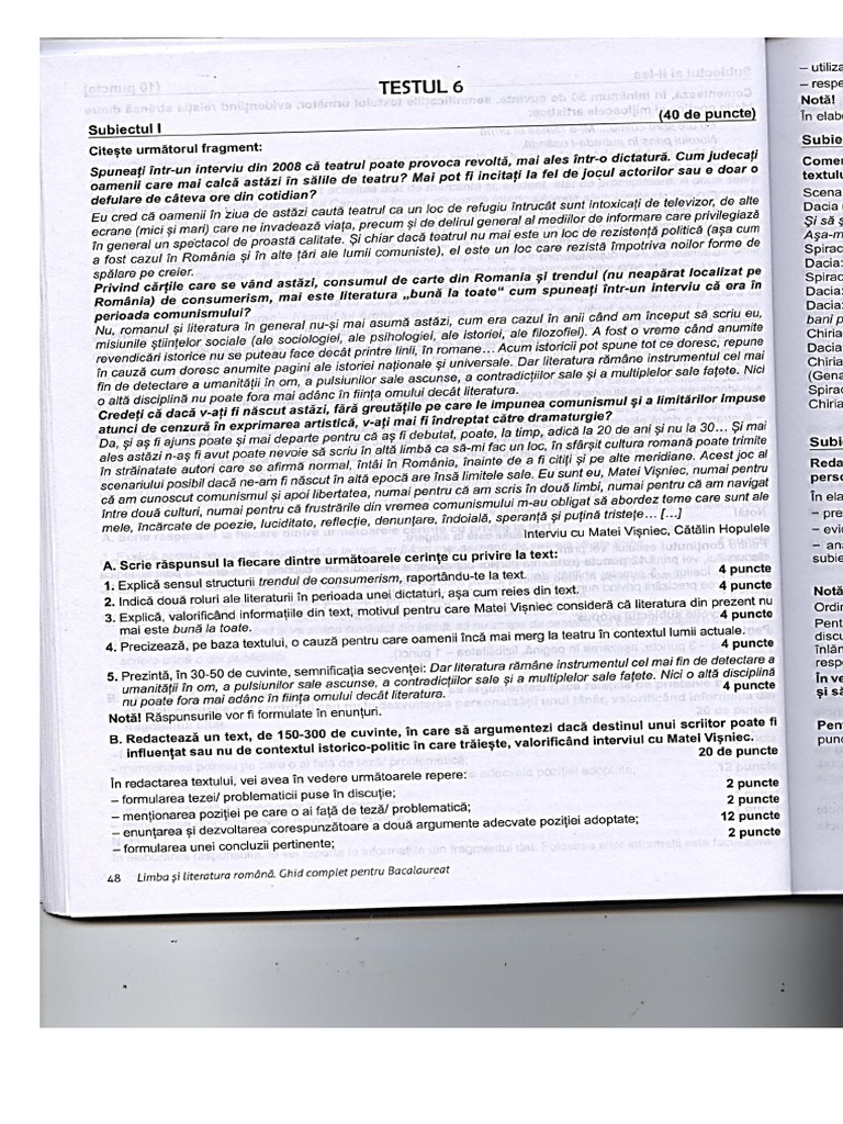 I 48 Limba literatura romana. Ghid complet pentru Bacaloureatubizarea corecté a conectorilor in arqumentare; 1 punct
