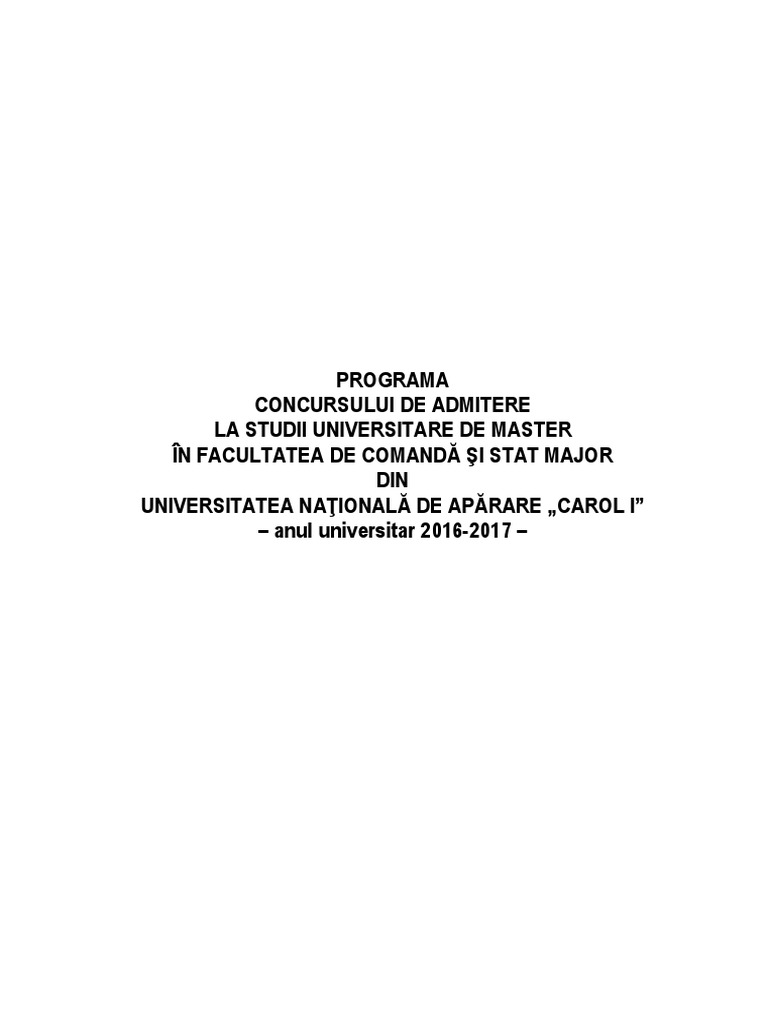 1. Actuala Programă a concursului de admitere în Facultatea de comandă şi stat major