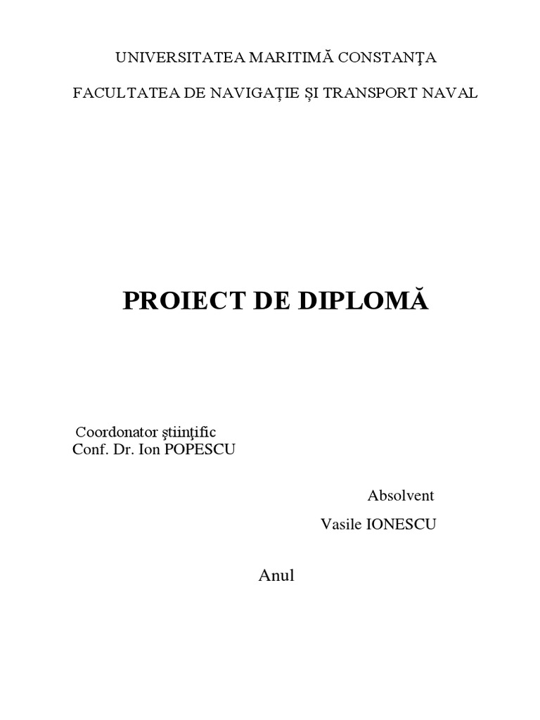 Proiectul de diplomă va conţine între 3 şi 5 capitole numerotate crescător, fiecare putând