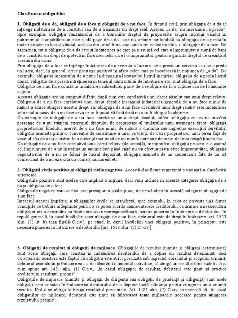 1. Obligaţii de a da, obligaţii de a face şi obligaţii de a nu face. În dreptul civil, prin obligaţia de a da se