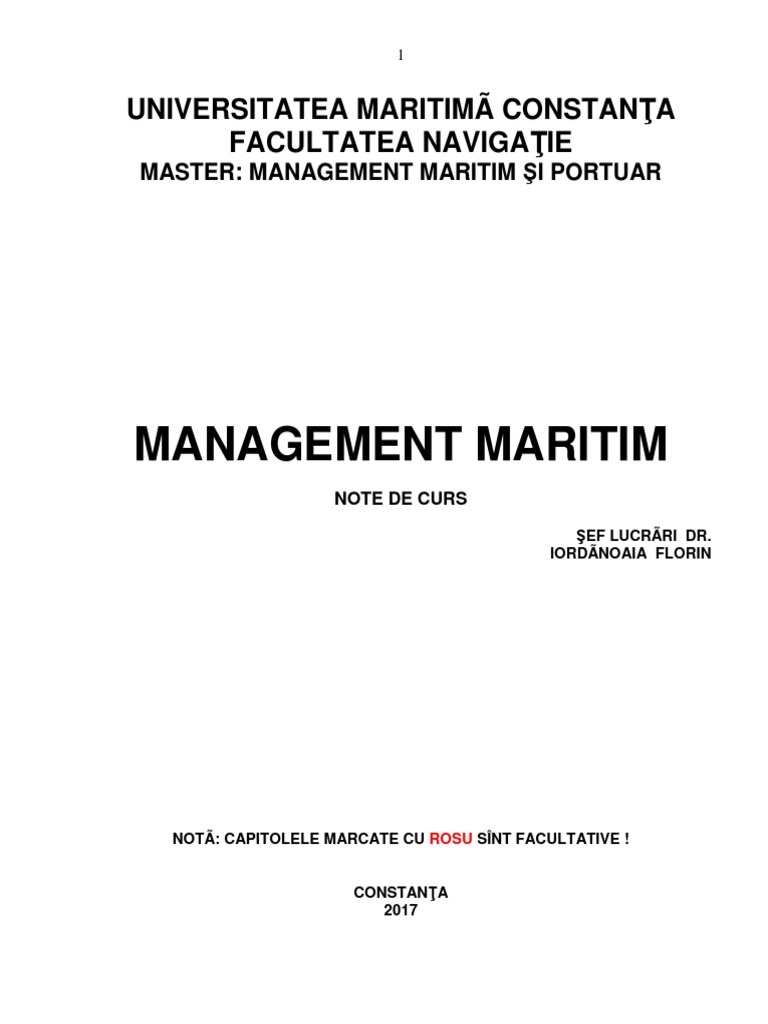 Managementul Maritim este unic, nu din punct de vedere formal, ci mai degrabã,