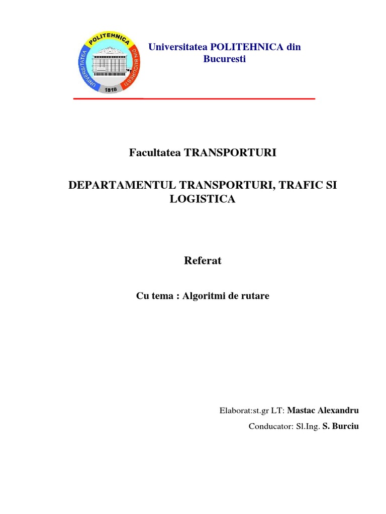 centre de comutaţie, este suficient a determina, cu un algoritm adecvat, drumul cel mai scurt prin graf