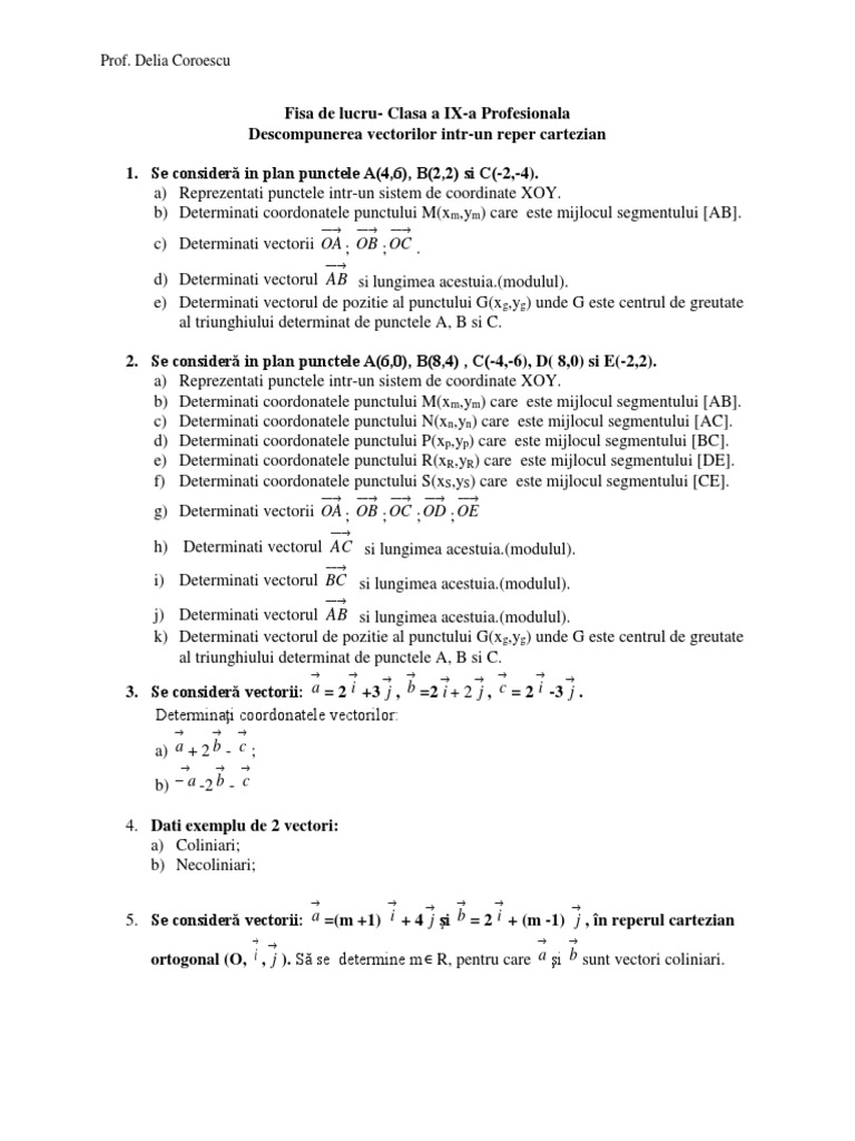 Determinaţi coordonatele vectorilor: