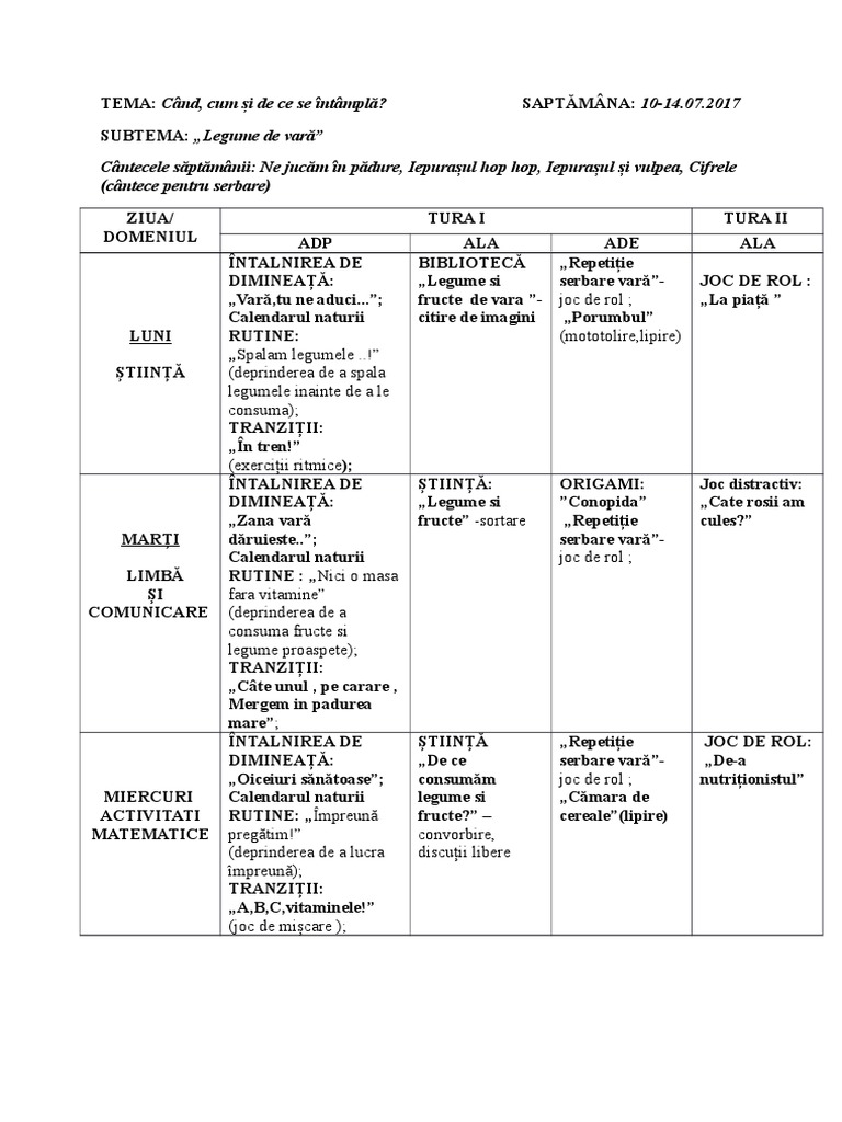 TEMA: Când, cum și de ce se întâmplă? SAPTĂMÂNA: 10-14.07.