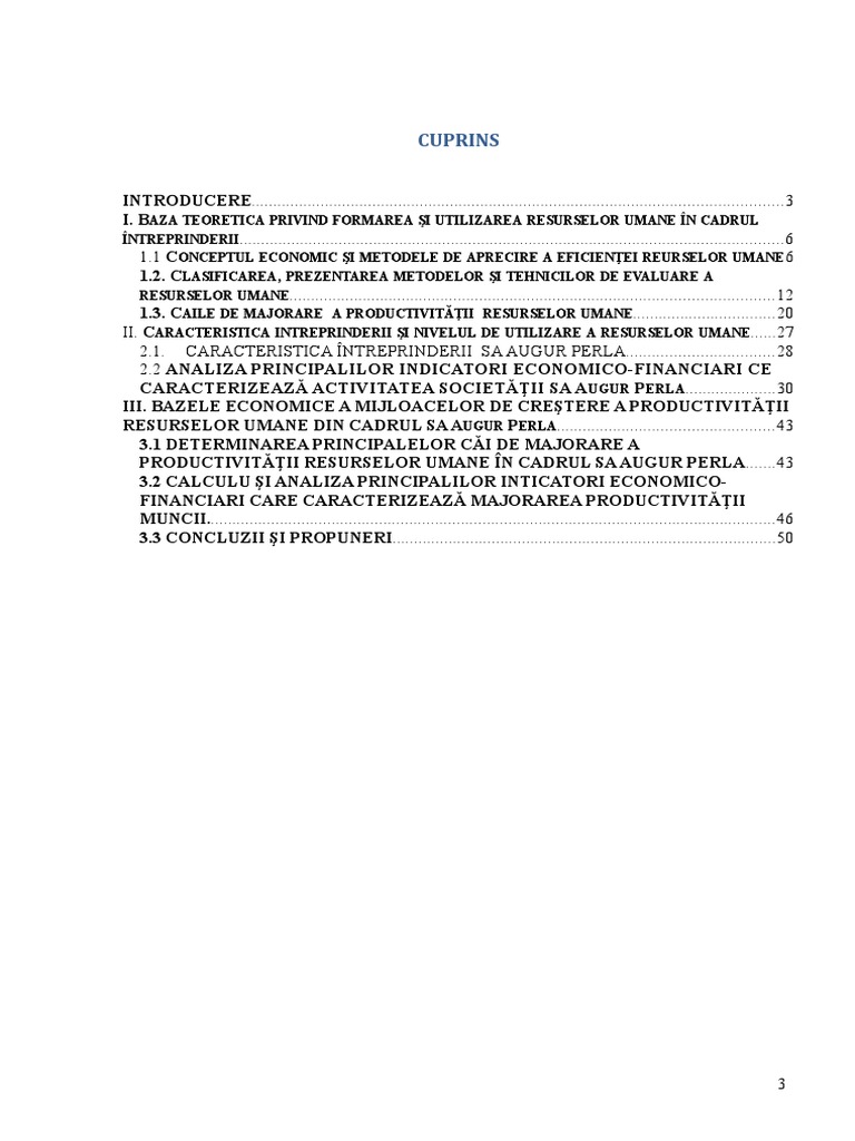 PRODUCTIVITĂŢII RESURSELOR UMANE ÎN CADRUL SA AUGUR PERLA.......43