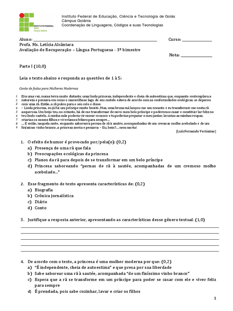 4. De acordo com o texto, a princesa é uma mulher moderna por que: (0,2)