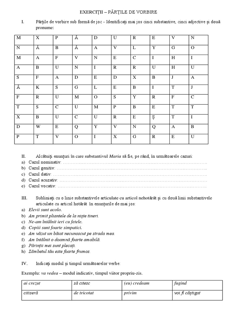 EXERCIȚII – PĂRȚILE DE VORBIRE