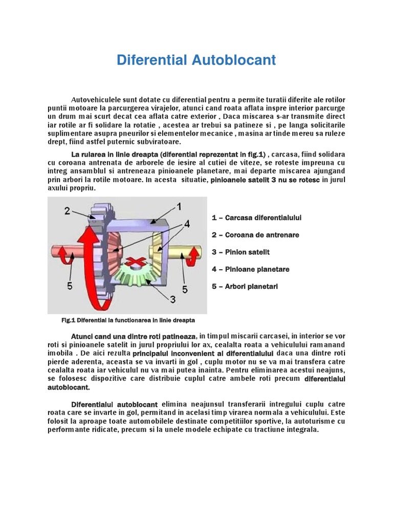 Diferentialul autoblocant elimina neajunsul transferarii intregului cuplu catre