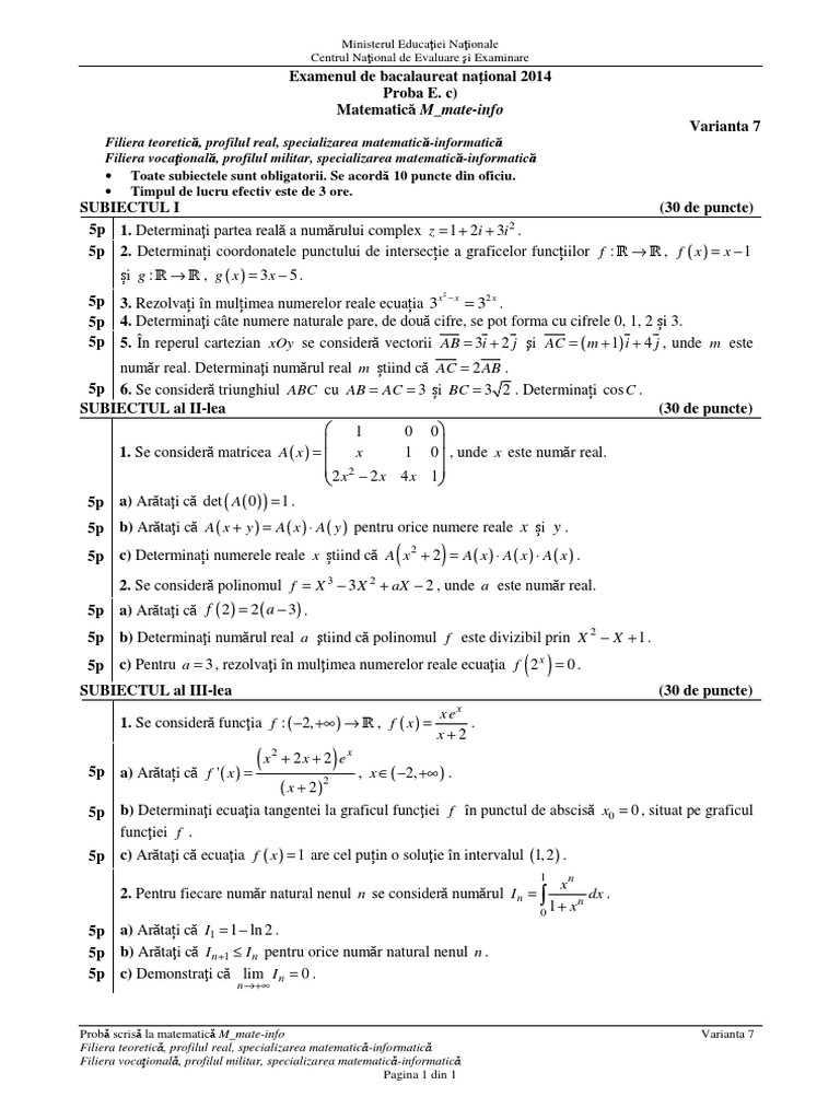 Probă scrisă la matematică M_tehnologic Varianta 8