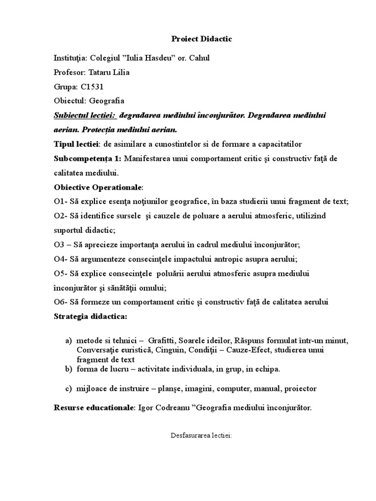 Resurse educationale: Igor Codreanu ”Geografia mediului înconjurător.