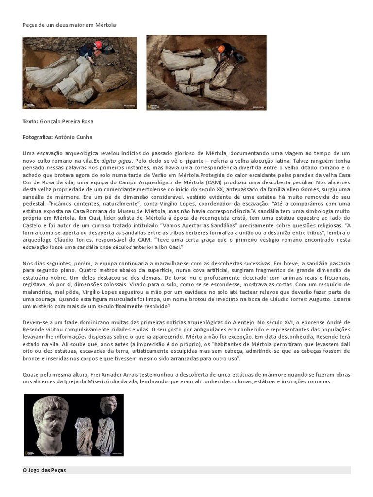 correspondência entre outro busto guardado no MNA e um dos togados agora encontrados. Em quatro décadas de escavações