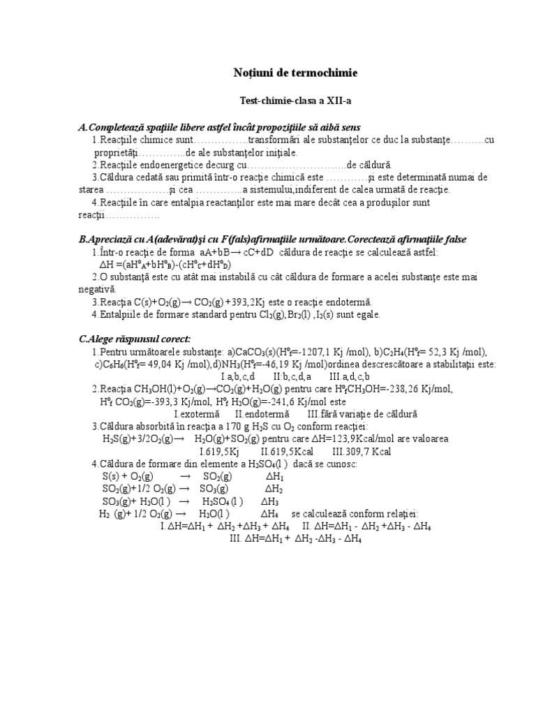 [Link]ţiile în care entalpia reactanţilor este mai mare decât cea a produşilor sunt