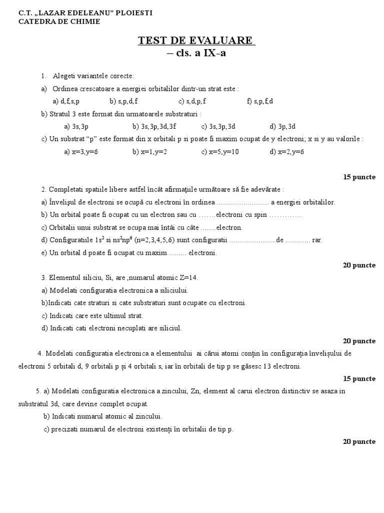 e) Un orbital d poate fi ocupat cu maxim ......... electroni.