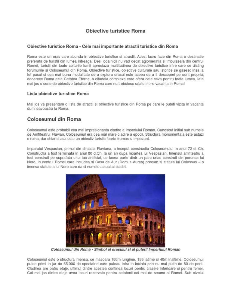 forumurile si Coloseumul din Roma. Obiective turistice, obiective culturale sau istorice se gasesc insa la