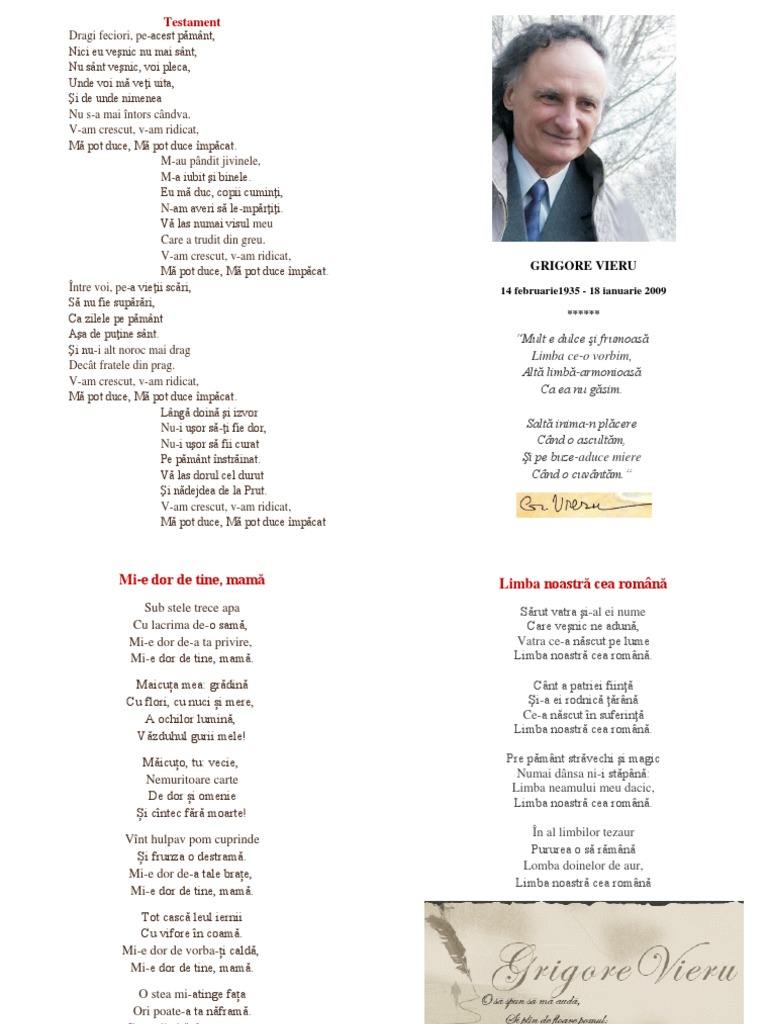 Mă pot duce, Mă pot duce împăcat. GRIGORE VIERU