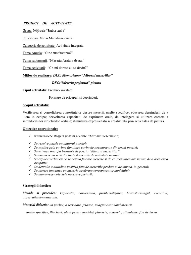 obiectivelor picta meseria preferata de noi cel mai mult. Explicatie