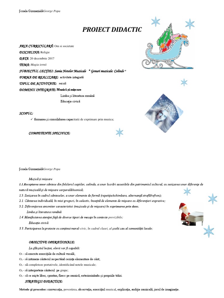 SUBIECTUL LECŢIEI: Sania Notelor Muzicale * Genuri muzicale: Colinde *