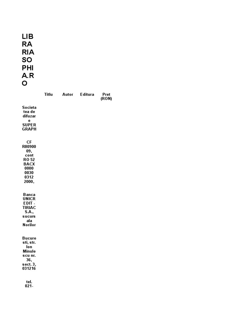 LIB RA RIA SO PHI A.R O: Titlu Autor Editura Pret (RON)
